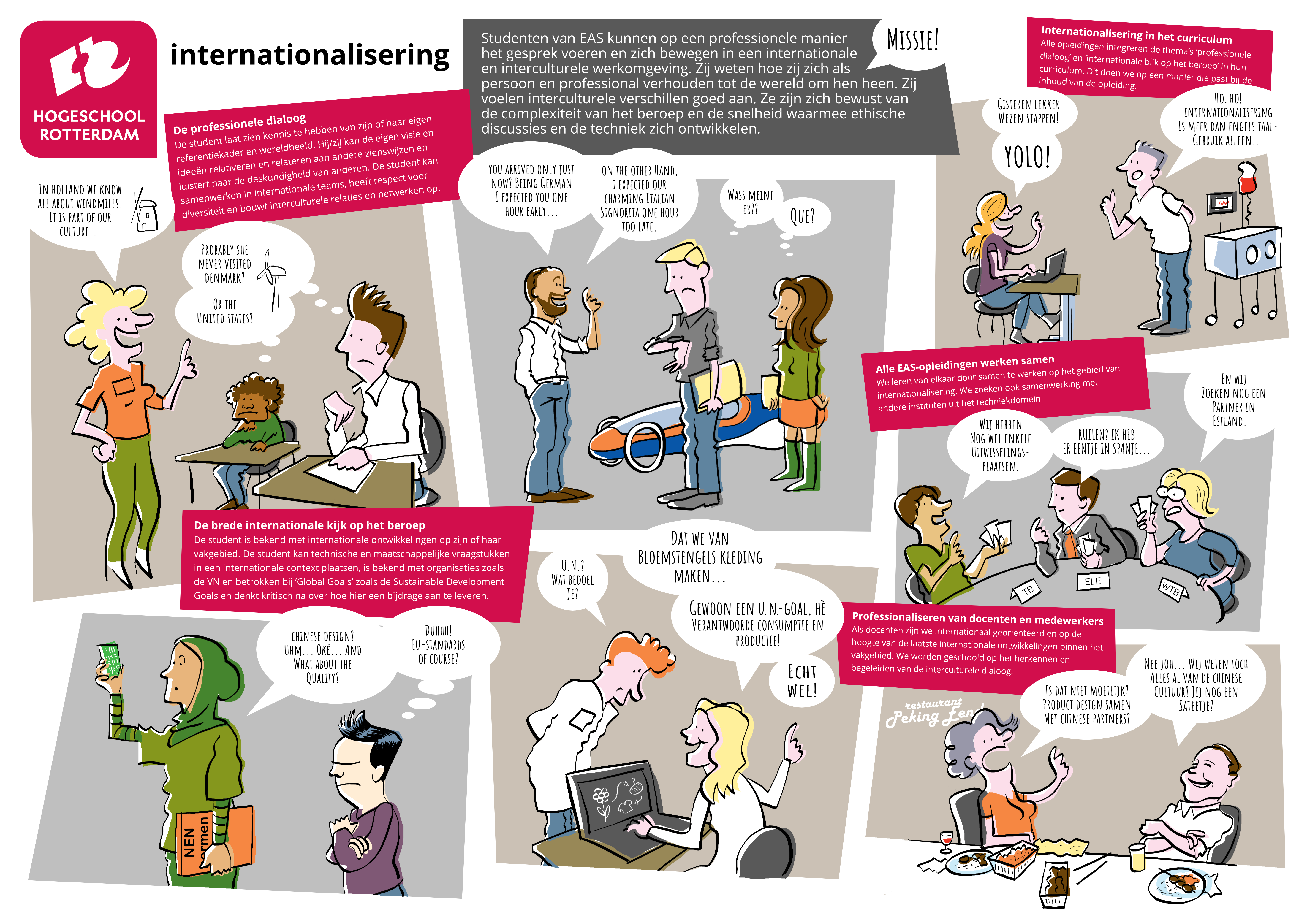 Voor de Hogeschool Rotterdam heb ik zo’n infocomic mogen maken om het internationaliseringbeleid op het Instituut voor Engineering and Applied Science toegankelijk te maken. Een hele mond vol, ik weet het. De doelgroep? Zowel enthousiaste als sceptische collega’s. Je vindt de infocomic in de bijlage.